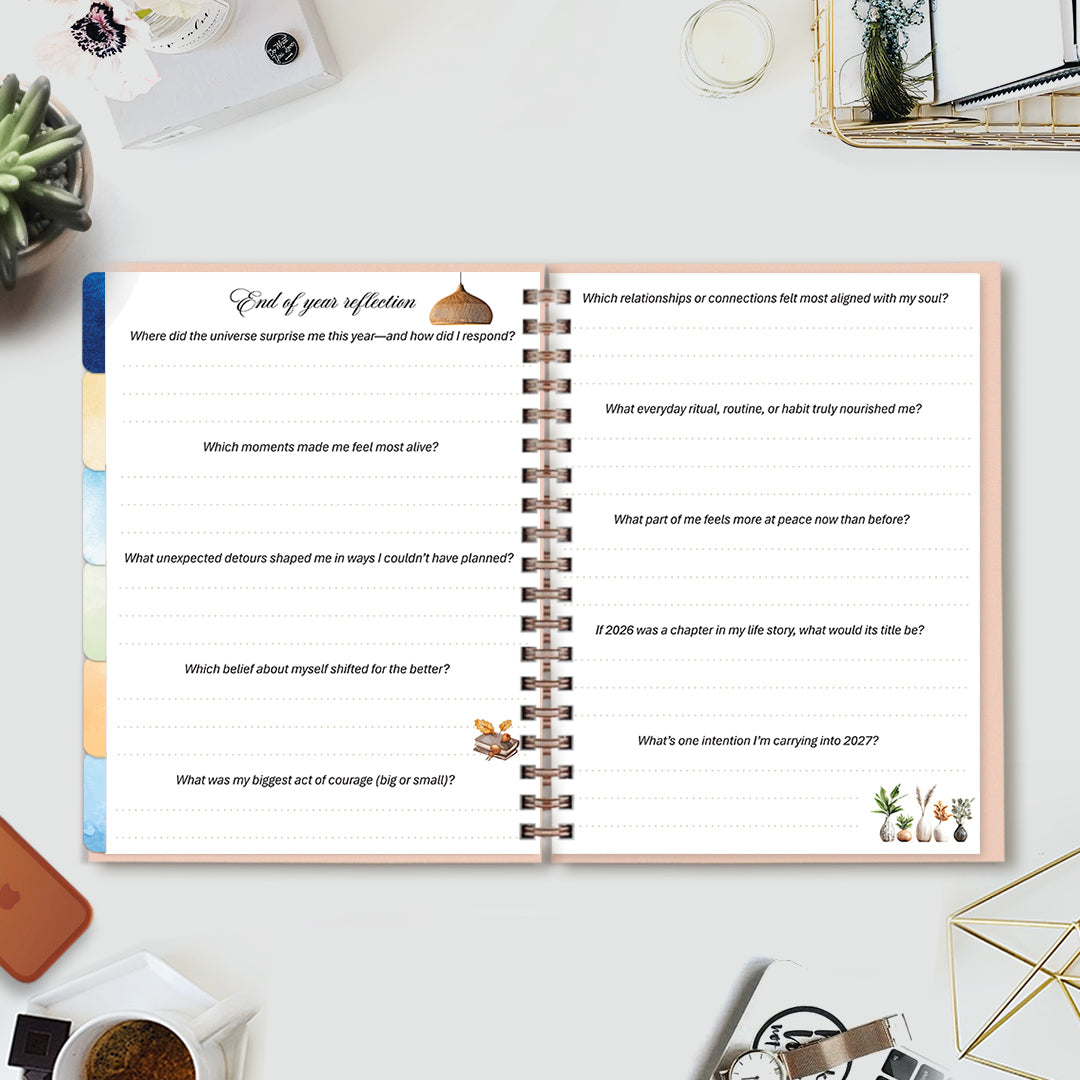 Step into the spotlight with your 2026 Dated Planner, designed for those ready to own their story. This isn't just a planner; it's your personal stage where every page becomes a chapter of your most fabulous year. Packed with inspiring themes that celebrate your unique journey, it transforms daily planning into an act of self-expression. From ambitious goals to spontaneous dreams, capture it all with style and intention. Because waiting for the perfect moment? That's so last season. Your time to shine starts now – pen in hand, dreams in focus, magic in motion.