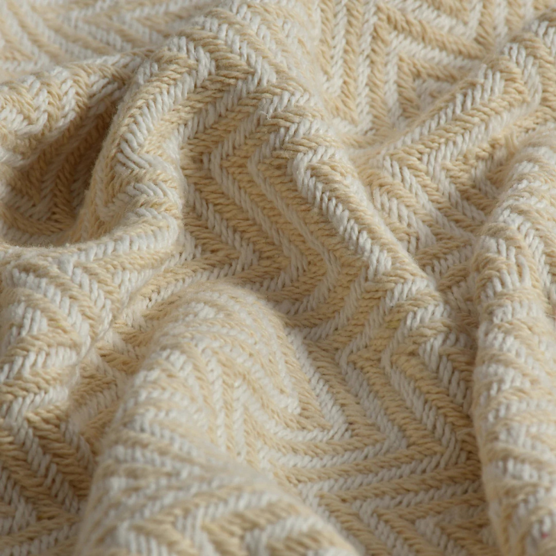 Elevate your interiors with the subtle boho charm of the Sashaa World Beige Chevron Sofa Throw with Tassels. Handwoven in a timeless chevron pattern, this cotton throw combines softness with visual texture, bringing effortless style and warmth to your space. Its neutral tones and playful fringe make it a versatile accent for your sofa, bed, or reading nook.