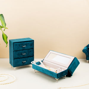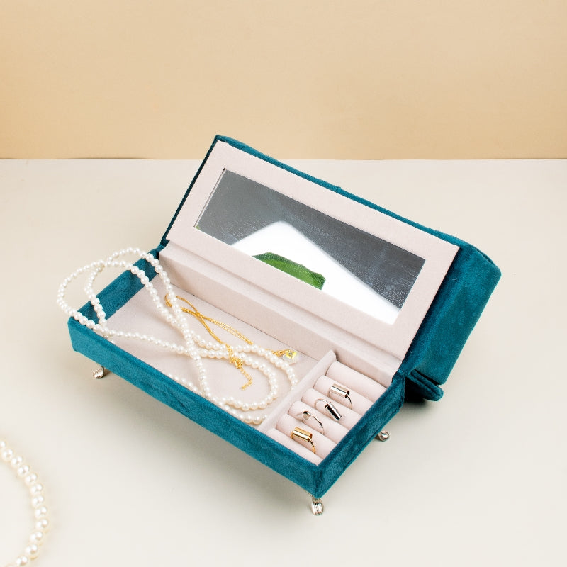 Carry all your delightful jewellery pieces with elegance and convenience. Keep your treasures shimmering and secure with this fashionista-inspired organiser. Display your necklaces, ankle chains, earrings, and rings together in one stylish and practical case. Sparkle with confidence and be proud of your fashionable accessory collection! Experience the perfect blend of style and convenience this Bespoke Treasures Jewellery Organiser. Whether you're at home or traveling, know that your beautiful jewellery is safe and protected in its cushioned interior. Keep all your favourite pieces in one chic case and get ready to be the envy of all!