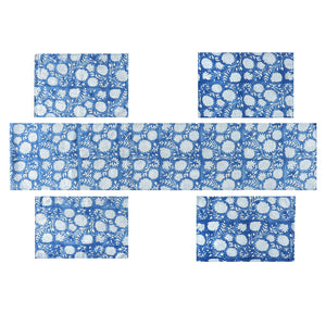 Elevate your dining experience with this stunning blue floral table runner and placematset, designed to bring a touch of elegance and sophistication to any setting. The intricate white floral patterns on a rich blue background create a classic yet contemporary look, perfect for everyday dining or special occasions. Add a refined and inviting touch to your dining table with this handcrafted, artisan-style table runner set, perfect for both casual and formal settings.