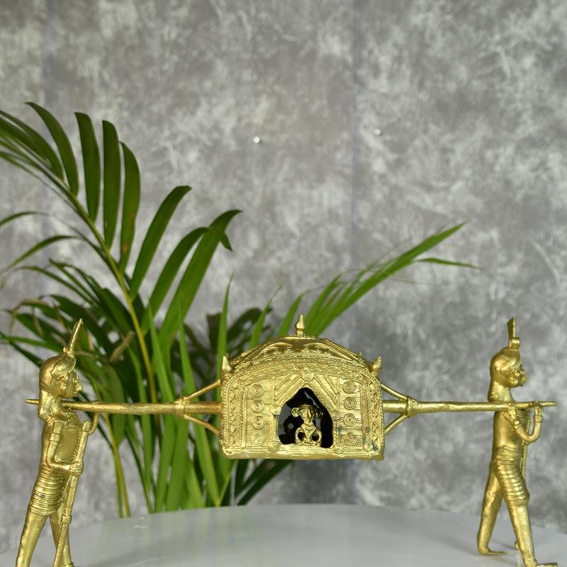 Unique Design: A magnificent representation of a traditional wedding palanquin, crafted using the ancient Dhokra art form, symbolizing the cultural richness of Indian weddings.