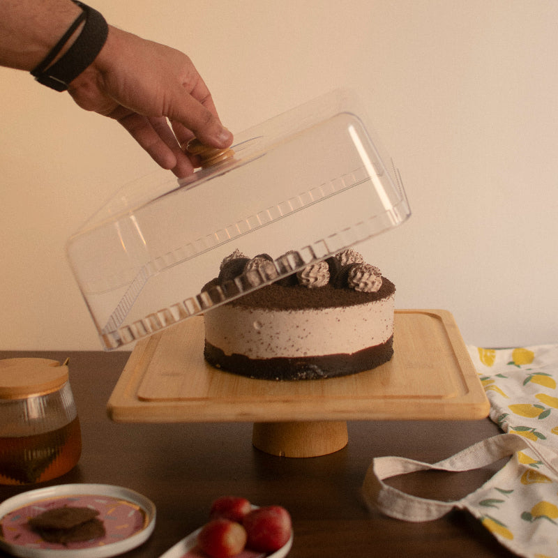 Elevate your dessert game with this stunning XL Cake Display Dome Stand! Crafted from quality wood, it's the perfect stage for showcasing your showstopping cakes, pastries, and sweet creations. The generous size accommodates larger confections while the elegant dome design keeps your baked beauties fresh and protected. Whether you're running a bakery, hosting a special celebration, or simply want to display your culinary masterpieces in style, this stand transforms any cake into a centerpiece worthy of admiration. A delightful blend of function and charm that'll have everyone asking for a slice!