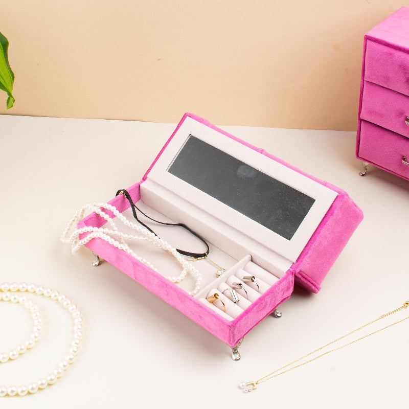 Securely store and carry all your favorite jewellery styles with this chic and practical organiser. With a cushioned and secure interior, keep your collection sparkling and safe as you travel. Conveniently store all your bespoke necklaces, ankle chains, earrings, and rings in one fashionable and functional case. Show off your accessories with style! Enjoy the perfect balance of style and practicality with this Chic and Artsy Jewellery Organiser. Whether you're at home or traveling, you can be sure that your precious collection is safe and secure in its cushioned interior. Showcase all your favourite pieces in one beautiful case and get ready to shine!