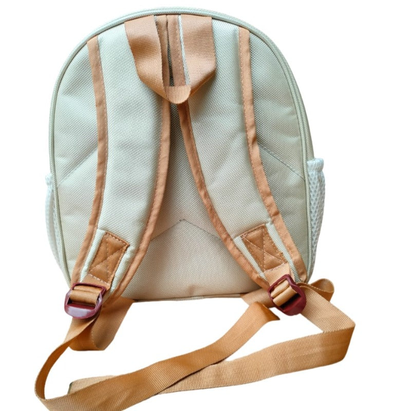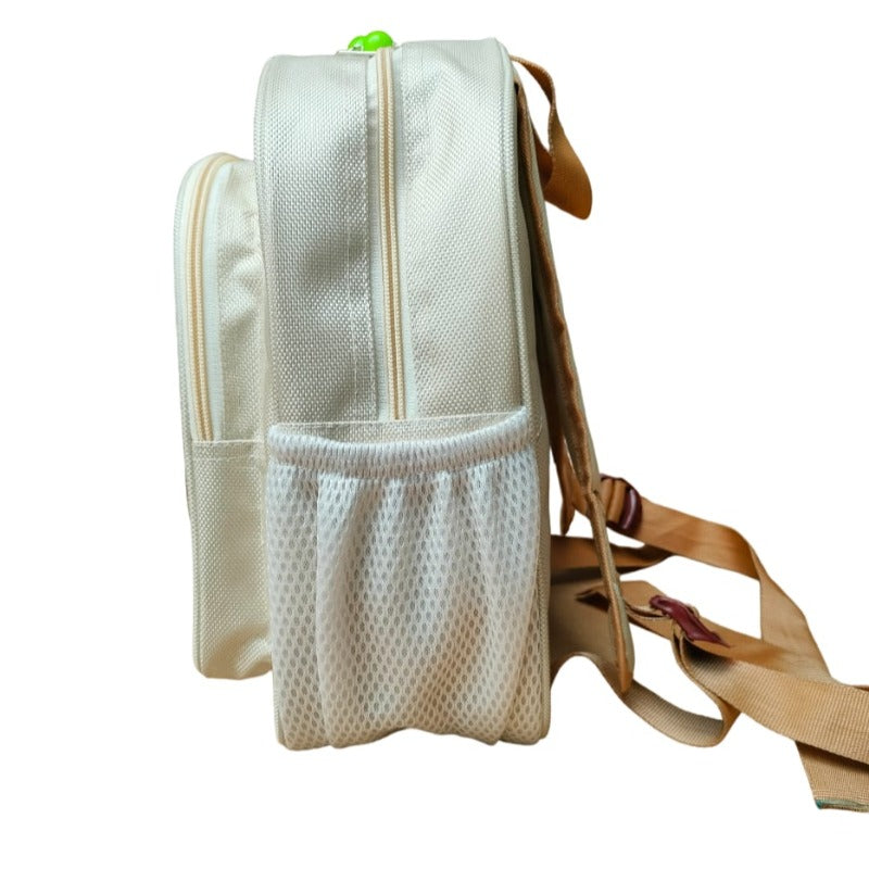 A kid's backpack is designed for comfort and practicality, featuring padded shoulder straps and back panels for ease of carrying. This bag includes one main compartment for organizing school supplies, lunch boxes, and personal items. It also includes one pocket in front to keep other nick knacks and 2 net pockets on the side to keep a face towel and a bottle. These are made with good quality nylon. we have added a variety of designs that appeal to children. also, all the embroidery and patch work is hand done and this entire bag is handcrafted with quality bag materials including a waterproof lining inside the bag. They are useful for daily school use, field trips, and extracurricular activities. helping children manage their belongings efficiently and independently.