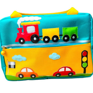 Handle day bag for children is a small, portable bag designed to be easily carried by kids. It is a spacious bag with one main pocket and a small pocket on the façade of the bag to keep nick knacks. The main pocket can fit a lunch box, a face towel, a bottle and other stationery. The light weight allows the bag to be easily carried by children. The bag has been made with good quality nylon. Every patchwork and embroidery on this particular bag is done by hand and the entire bag is handcrafted. on top of that, good quality bag materials have been used to finish the product. All in all, a useful bag for children for day trips and extra curricular activities.