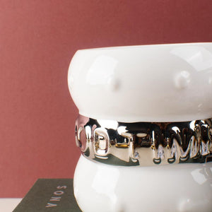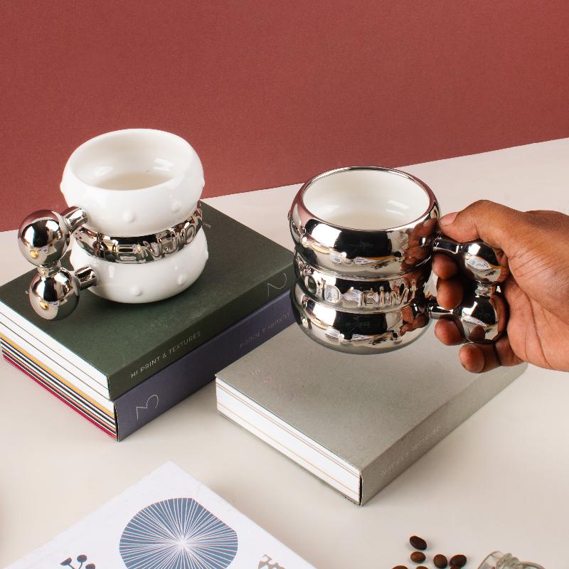 Get your caffeine fix with a twist! This Chrome Sphere Coffee Mug is crafted from durable ceramic for a unique drinking experience. Upgrade your morning routine with this quirky and playful addition to your kitchen. (Caffeine not included.)