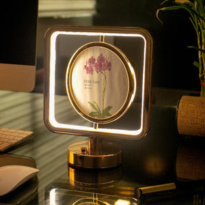 Light up your memories with the Circular Photo Frame Touch Sensor Lamp. This elegant lamp not only adds a touch of style to any room, but its unique touch sensor feature allows you to easily turn it on and off with a simple touch. Say goodbye to fumbling for a switch and hello to convenience!