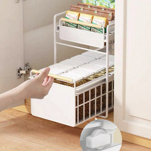 This quirky cart organiser is perfect for keeping your shelves and cabinets neat and tidy. With dual storage functionality, it's ideal for storing a variety of items. Say goodbye to clutter and hello to organized chaos (the good kind).