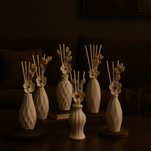 Contemporary Vase Reed Diffuser is a great way to make your home smell refreshing throughout the day. Place it on your side table, centre table, night stand or dining table. These diffusers come in an elegant flower vase along with reeds. The reeds absorb the oil and spread the fragrance in the room via capillary action. This is an excellent housewarming gift or an anniversary gift.