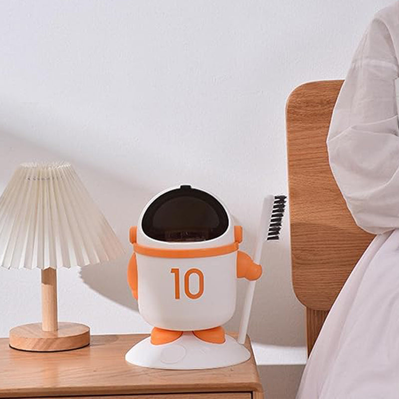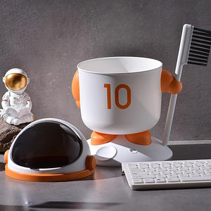 Universe just got tidier with Cosmic Tidy Astronaut Desk Bin! Keep your workspace organized and add some fun with this quirky desk bin. No more boring trash cans, let this playful space adventurer hold your trash in style. (Space puns included, no extra charge!)