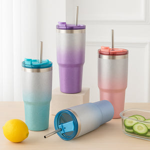 A Dazzle Blink Heat Insulated Travel Coffee Mug is crafted for you to sip on hot tea, hot coffee, fruit juice, smoothies, or other drinks on the go. This insulated sipper with a handle and straw for convenience is ideal for everyday use and comfortable to hold. The straw will allow you to drink your favourite beverage conveniently on the go. Sip on hot beverages like milk, coffee, tea, or ice-cold drinks such as iced tea, cold coffee, soft drinks, cocktails or mocktails in this well-designed portable glass drinking cup. This glass drinking cup is multi-functional, easy to clean and durable.