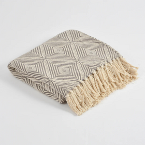 Wrap yourself in understated elegance with the Sashaa World Diamond Weave Comfort Throw. Featuring a refined geometric diamond pattern in a calming grey and natural color palette, this throw brings warmth and sophistication to any living space. Whether it’s draped over a sofa, layered on your bed, or used for cozy evenings, its soft cotton weave makes it a staple for year-round comfort.