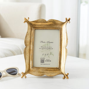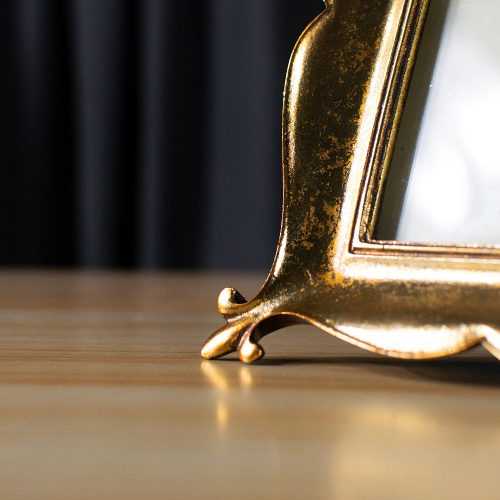 Display your most cherished memories in the Elayne Sleek Gold Photo Frame. Our classy and stylish photo frame will complement the beautiful photographs. This photo frame is what you need to spice up your night stand, side table, study or work table. The intricate craftsmanship along the frame brings an elegant look to the space. This is in portrait size, thus any photo taken vertically will fit fine in this golden picture frame.