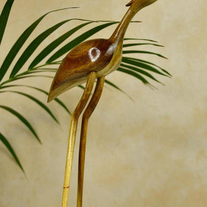 Elegant Wooden Carved Flamingo Sculpture: Premium Abstract Decor Accent