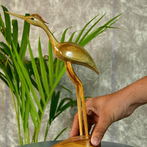 Unique Design: A beautifully carved wooden flamingo sculpture, blending elegance with abstract design to create a premium decor accent.
