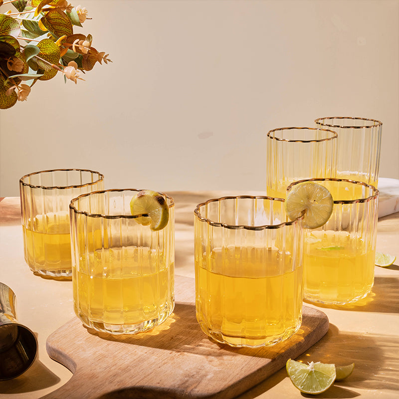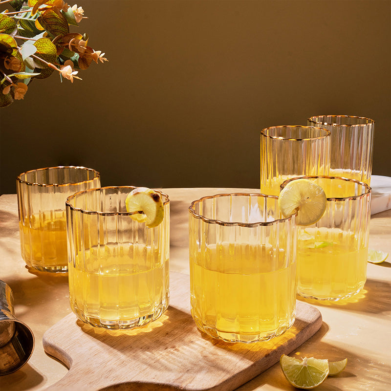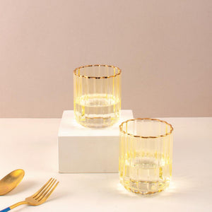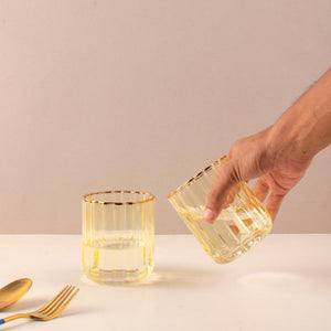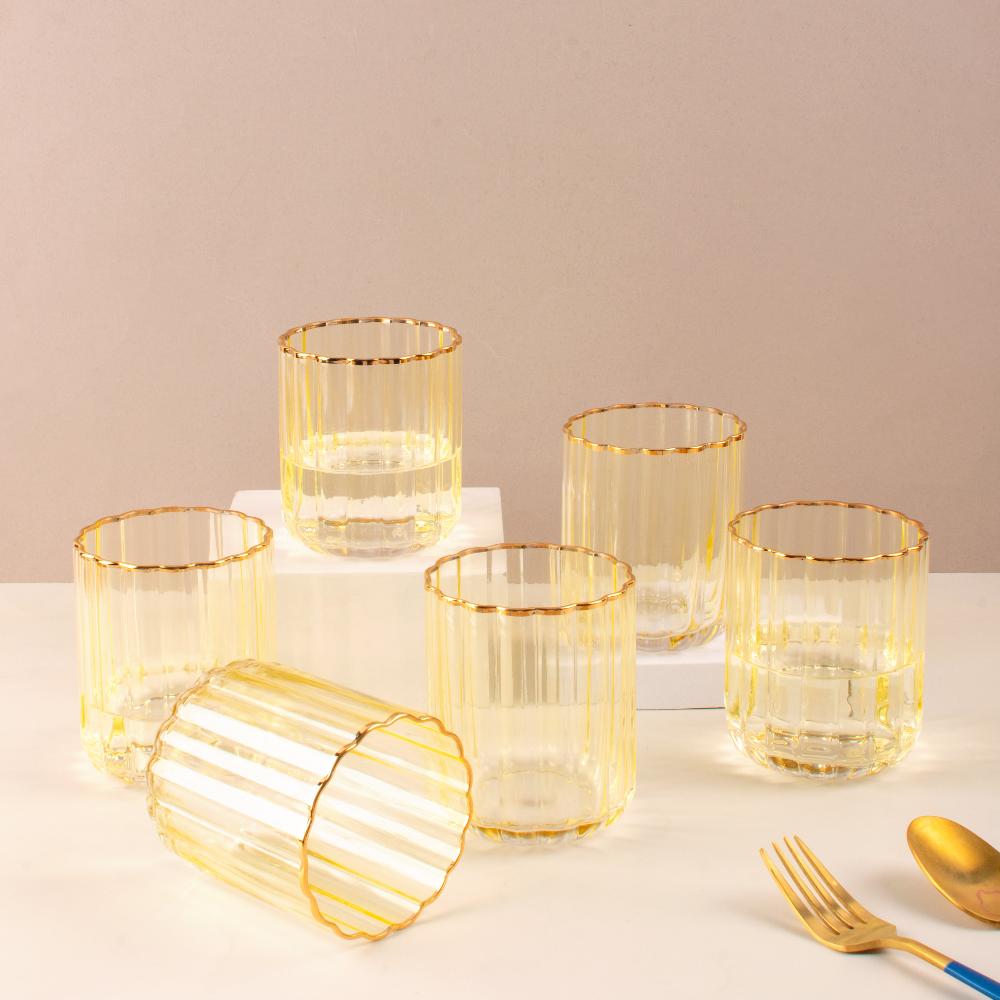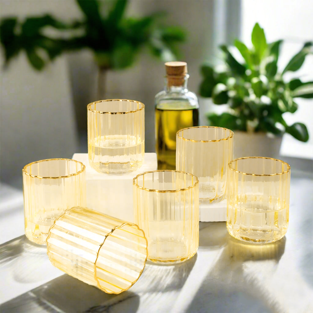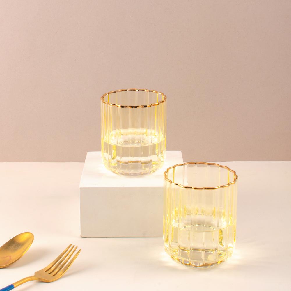 Indulge in luxury with our Eternal Sunstone Goldwave Crest Glasses. Crafted with premium materials and adorned with a delicate gold rim, these glasses elevate any table setting. Available in sets of 2, 4, or 6, these glasses are the perfect addition to any sophisticated gathering.