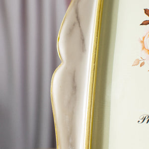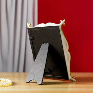 Display your most cherished memories in the Ethereal Marble Tone Photo Frame. Our classy and stylish photo frame will complement the beautiful photographs. This photo frame is what you need to spice up your night stand, side table, study or work table. The intricate craftsmanship along the frame brings an elegant look to the space. This is in portrait size, thus any photo taken vertically will fit fine in this golden picture frame.
