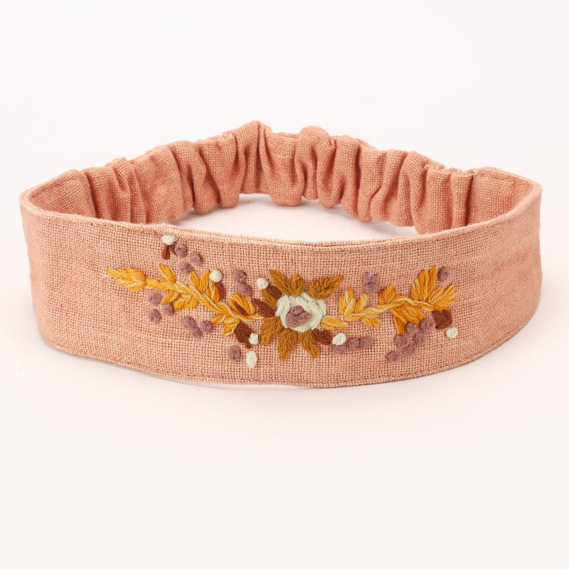Enhance your everyday style with this handcrafted embroidered headband, designed for both comfort and elegance. Made from soft peach fabric, this headband features a stunning autumn-inspired floral embroidery in warm tones of gold, brown, and lavender, creating a timeless, artisanal look. This earthy-toned embroidered headband is a must-have accessory for those who love handmade, nature-inspired fashion. Perfect for everyday wear or as a thoughtful gift!