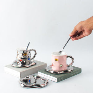 Gemstone Elegance Tea & Coffee Cup with Plate & Spoon