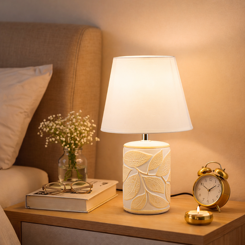 Green And White Table Lamp - Two Tone Textured Leaf Motif