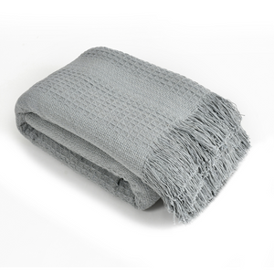 Our Grey-Blue cotton throw with waffle texture is super soft and breathable and adds a touch of luxury and stylish flair to your decor and depth and texture to your living space. Whether lounging on the sofa or cosied in bed, our cotton throw is the perfect homely yet stylish addition to any room.