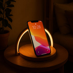 Elevate your charging game with the Halo Charge Station! This sleek station is perfect for all your wireless devices, including phones and airpods. With a built-in night lamp, you'll never have to fumble for your charger in the dark again. Say goodbye to tangled cords and hello to effortless charging.