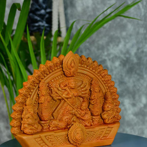 Unique Design: A powerful and sacred terracotta statue of Goddess Durga, hand-sculpted to embody her strength, courage, and divine grace.
