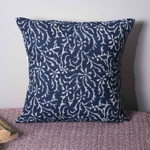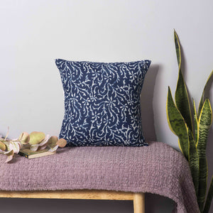The Indigo Vine Pillow Cover brings bold contrast to your decor with its deep indigo blue base and white leaf and stem pattern. This full-coverage design adds texture and a touch of nature-inspired elegance to any space.