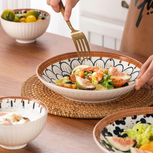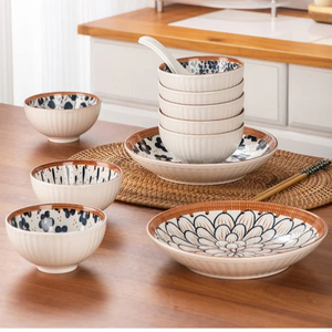 Classic Bowls: Classic texture outside offering non-slip hand grabbing, and assorted pattern inside for easy distinguish, this nice-looking bowl set would display food well and light up your dinning table