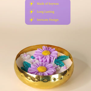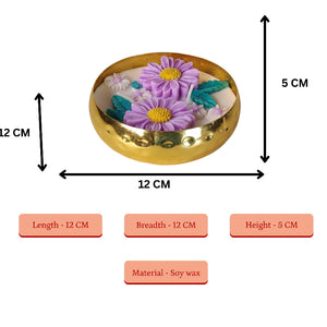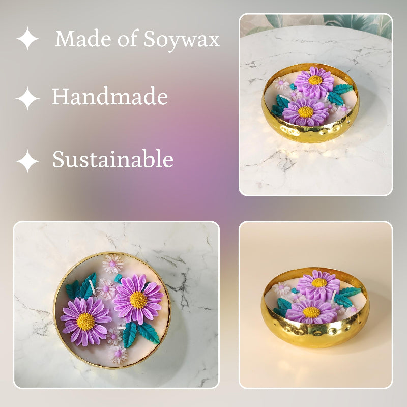 Home Large Soywax Candle In Metal Pot Two Flower With Petals Yellow Centre Flower