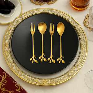 Leafy Dessert Spoon Set of 4 to satisfy your sweet tooth in a fun way. This mini spoon and fork set is perfect for savouring delicious sweets, ice cream, or any other sort of dessert. Add this to your cutlery collection to enhance its beauty. The gold tone and leafy design are what does the magic for this cutlery set. This can be an amazing housewarming or anniversary gift.