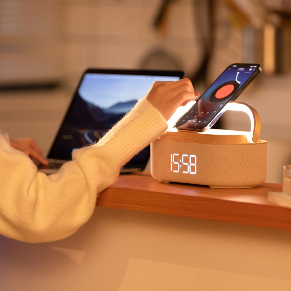 LumoDock Wireless Charging Bluetooth Speaker Smart Clock With Alarm