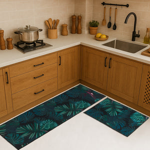 This set of 2 kitchen mats is designed to fit snugly into corner spaces while offering a soft surface for your feet. The easy-to-clean material makes maintenance a breeze. Ideal for modular kitchens, these mats add a stylish and practical touch to your everyday cooking space.
