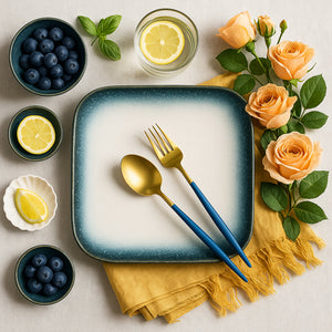 This elegant dinner plate can also be used as a starter or a snack plate. Suggested buy would be to couple these plates with the smaller matching/contrasting plates and bowls.