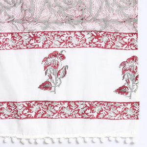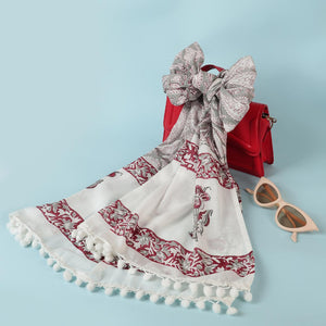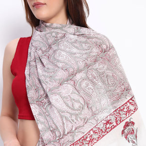 Drape yourself in timeless elegance with this exquisite stole, adorned with intricate paisley patterns and delicate floral accents in rich red, grey, and white hues. Its lightweight fabric and refined design exude sophistication, making it a versatile accessory that seamlessly complements your style.