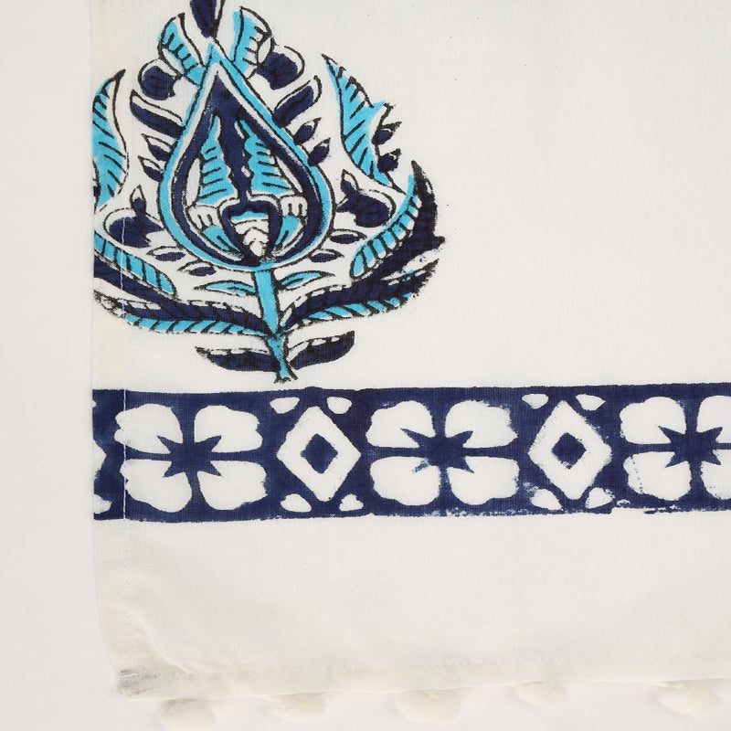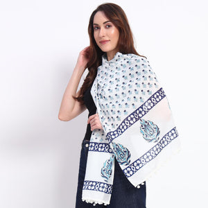 Drape yourself in timeless elegance with this exquisitely crafted stole, adorned with intricate patterns and delicate floral accents in a serene blend of blue and white. Its refined design and versatile charm make it the perfect accessory to elevate any look with effortless sophistication.