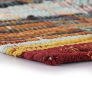 Add a pop of color and handmade charm to your space with the Sashaa World Chindi Rug. Handwoven from recycled cotton strips, this vibrant rug showcases a beautiful mix of bold tones and textures that breathe life into any room. Whether placed at the entryway or by your bed, this rug delivers both style and comfort underfoot. Ethically crafted and eco-friendly, it's a perfect choice for sustainable living.