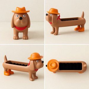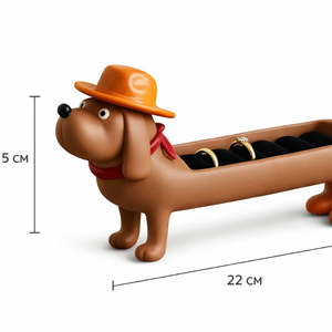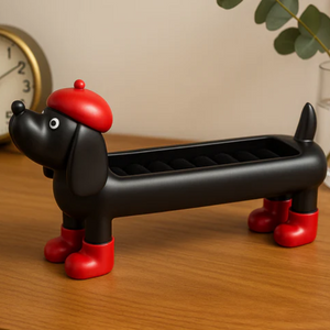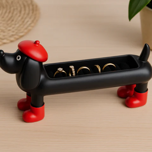 Charming Design: Playful dachshund shape with red beret and boots adds a quirky yet elegant touch to your dresser or vanity.