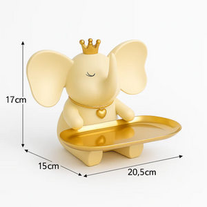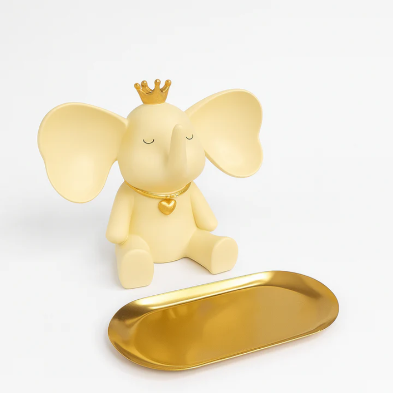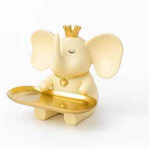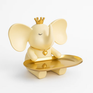 Bring charm and elegance to your home with this delightful Elephant Figurine with Golden Tray. Crafted from premium-quality resin, this cute elephant sits gracefully with a serene expression, holding a gleaming golden tray perfect for organizing your small essentials. Its minimalist design with royal detailing—like the golden crown and heart pendant—adds a modern luxury touch to any interior.