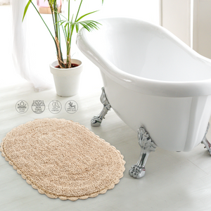 Reversible Oval Shaped Bathroom Rug (Beige)