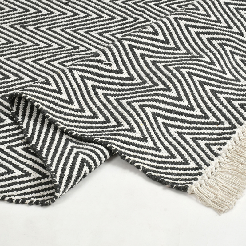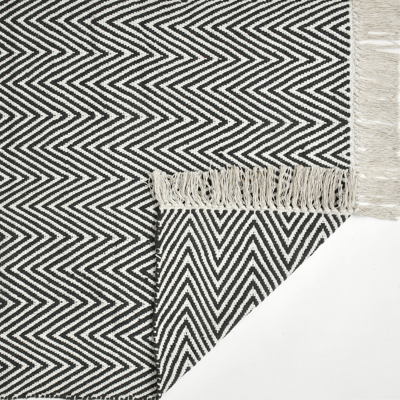Reversible Rug With Tassels Black Color