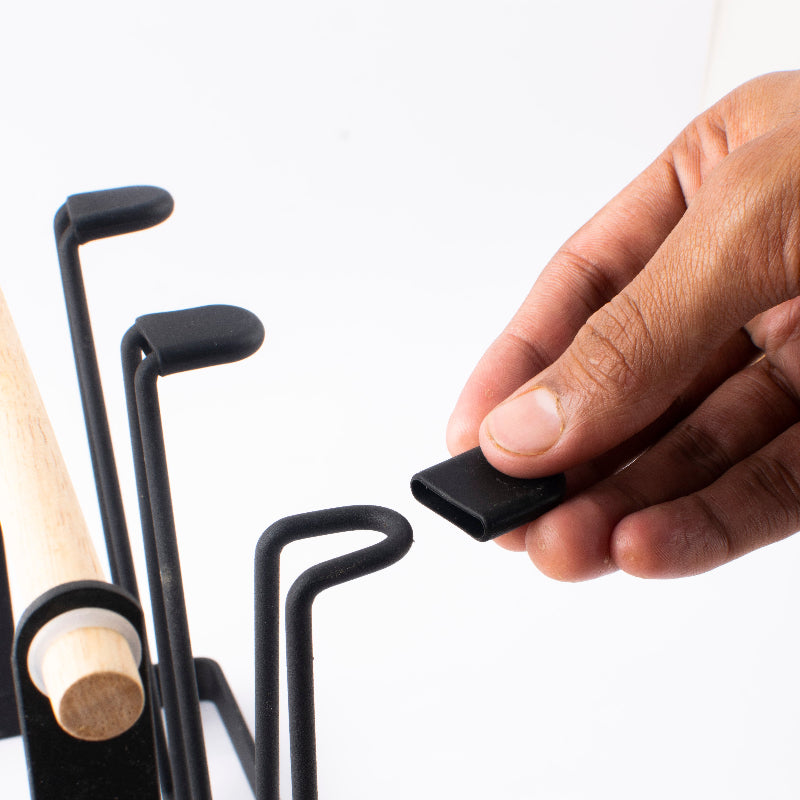 Keep your glassware safe and sound with our Sip & Store Glassware Holder! Featuring black silicone tips to protect against scratches, you can rest easy knowing your glasses are secure. Say goodbye to broken glass and hello to peace of mind, cheers to that!