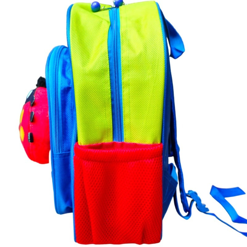 A kid's backpack is designed for comfort and practicality, featuring padded shoulder straps and back panels for ease of carrying. This bag includes one main compartment for organizing school supplies, lunch boxes, and personal items. It also includes one pocket in front to keep other nick knacks and 2 net pockets on the side to keep a face towel and a bottle. The USP of this bag is that each design has a specific soft toy stitched onto the backpack thus making it more visually appealing to children. These are made with good quality nylon. we have added a variety of designs that appeal to children. also, all the embroidery and patch work is hand done and this entire bag is handcrafted with quality bag materials including a waterproof lining inside the bag. They are useful for daily school use, field trips, and extracurricular activities. helping children manage their belongings efficiently and independently.