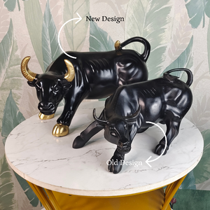 Features a striking black bull sculpture with a powerful and dynamic stance, adding a strong and commanding presence to any décor.