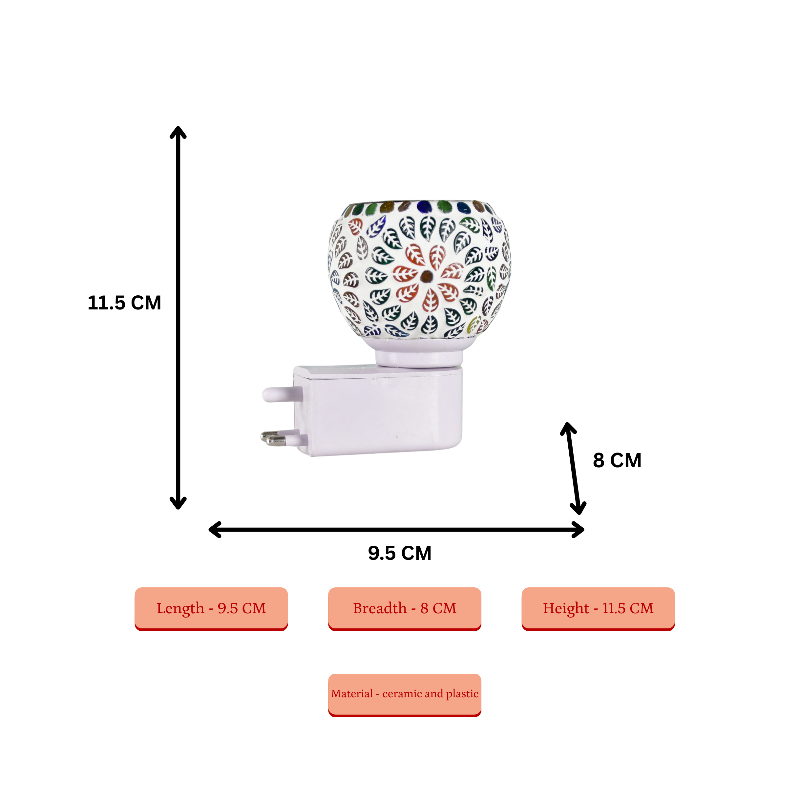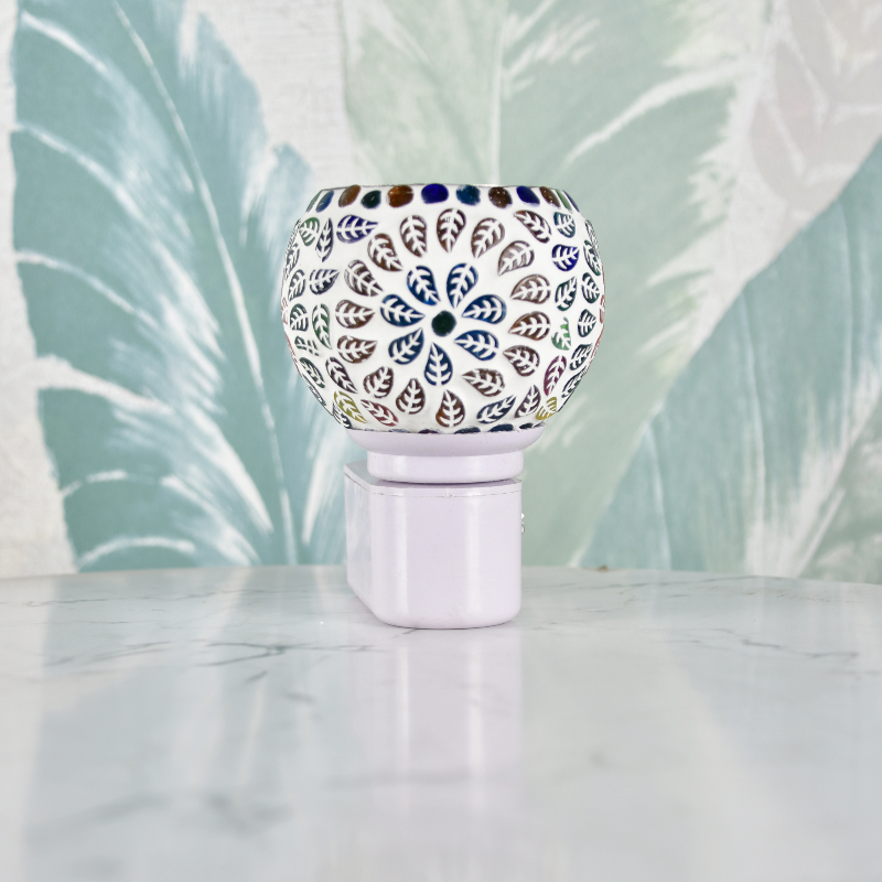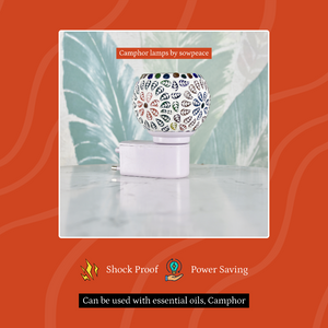 Enhance your home with the Sowpeace Electric Camphor Lamp, a beautiful mosaic leaf design diffuser. Perfect for essential oils or camphor, this shock-proof and power-saving electric lamp adds tranquility and fragrance to any space, ideal for pooja rooms and home decor.