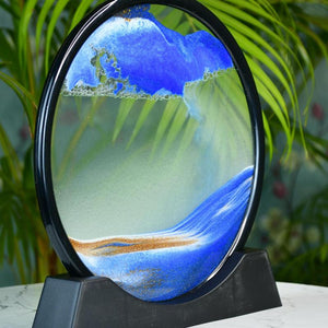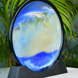 Unique Design: Elegant circular glass sand art featuring a mesmerizing moving sand sculpture that creates a dynamic visual effect.