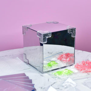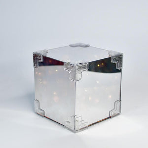 Elegant Design: A stunning tulip-inspired lamp encased in a sleek transparent cube, adding a touch of sophistication and charm to your décor