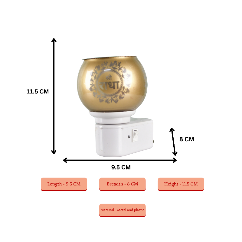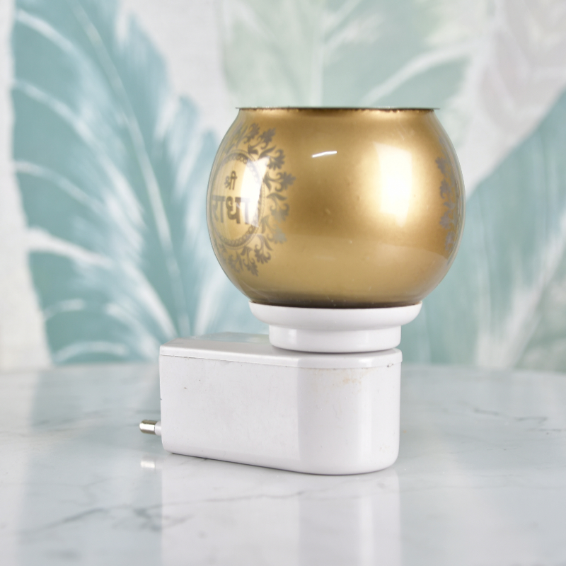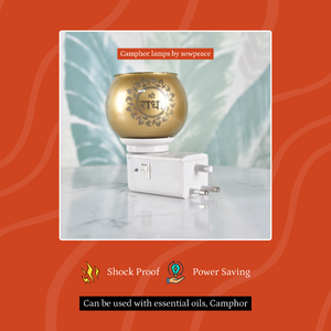 Illuminate your space with the Sowpeace Electric Camphor Lamp, a shockproof and power-saving fragrance diffuser. Perfect for pooja rituals and home decor, this golden metal and plastic lamp features an elegant Radha design, creating a tranquil ambiance.