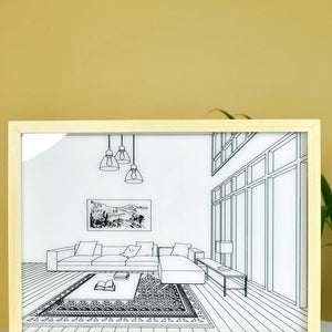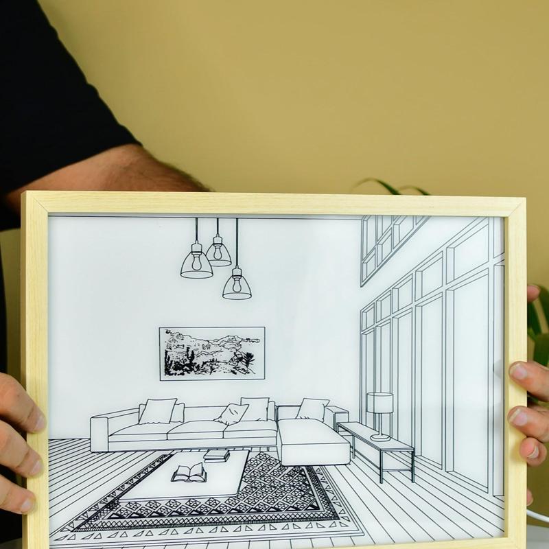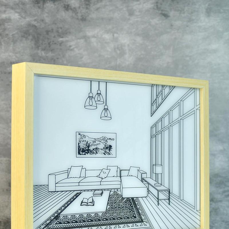 Unique Design: Sleek LED photo frame featuring a landscape sofa scene, with built-in illumination to add a warm, elegant glow to your space.