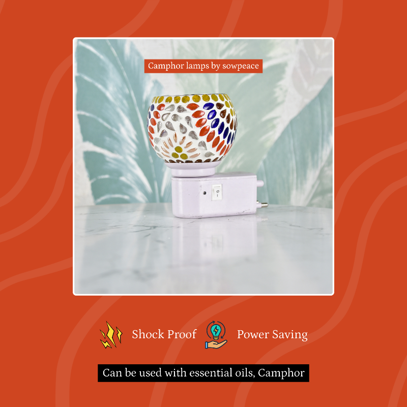 Enhance your space with this stunning mosaic electric camphor lamp by Sowpeace. Perfect as an electric diya lamp for pooja rooms or a decorative home decor light, it's shock-proof, power-saving, and ideal for essential oils or camphor.
